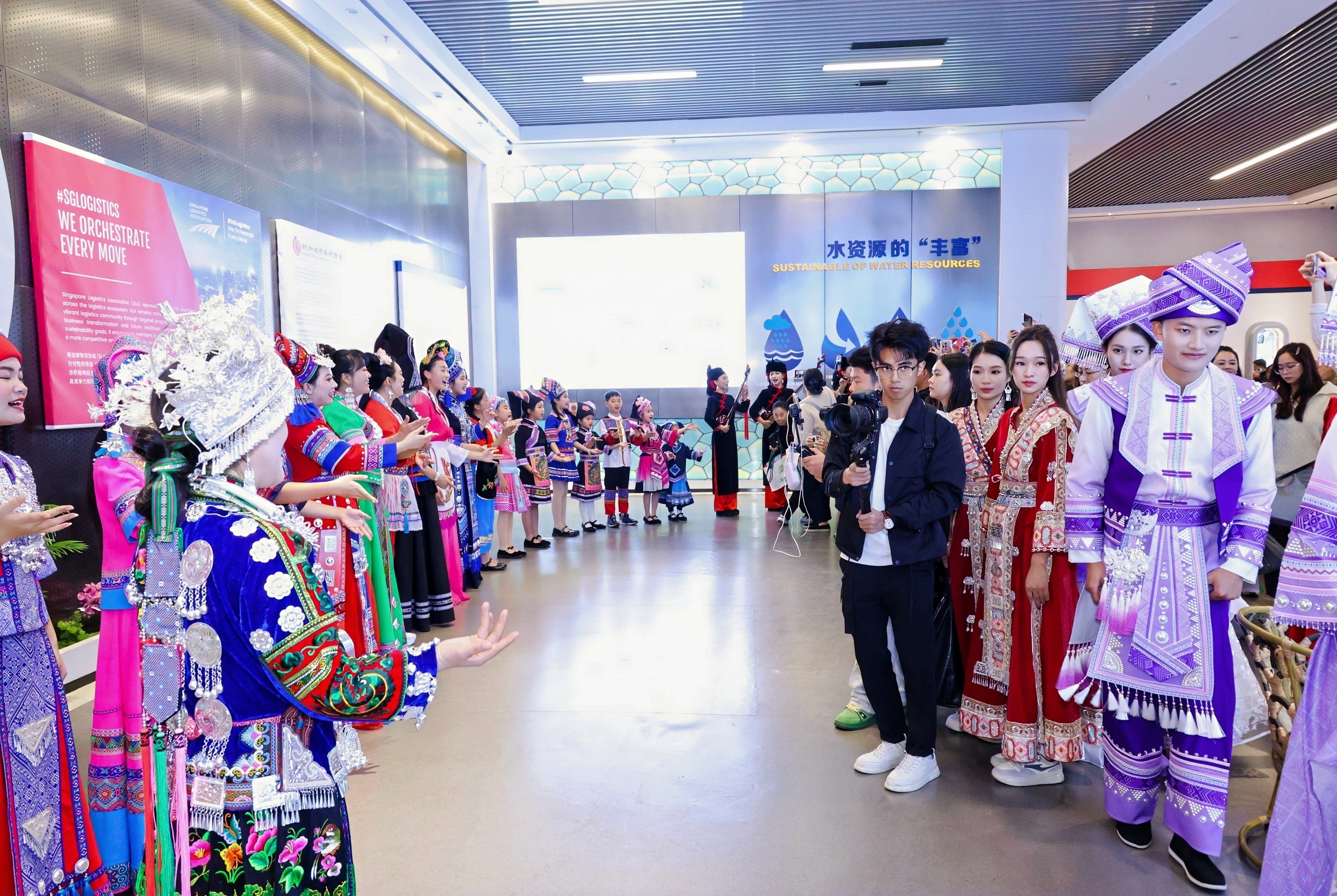 活動(dòng)中,沉浸式參觀匯聚中心各文化主題展館的環(huán)節(jié)成為亮點(diǎn)。演員們身著代表新加坡及廣西各式民族服飾,在新加坡展館輪番演繹經(jīng)典片段。婉轉(zhuǎn)的唱腔、細(xì)膩的表演,與展館中融貫的文化元素交相輝映,不僅營造出一場視聽交融的盛宴,更生動(dòng)詮釋了匯聚中心“以文化匯商家,以商貿(mào)聚合作”的理念?,F(xiàn)場嘉賓或駐足聆聽,或交流感悟,或舉起手機(jī)記錄動(dòng)人瞬間,在多元文化的交融中,近距離感受商貿(mào)往來與文化交融共生的獨(dú)特魅力。