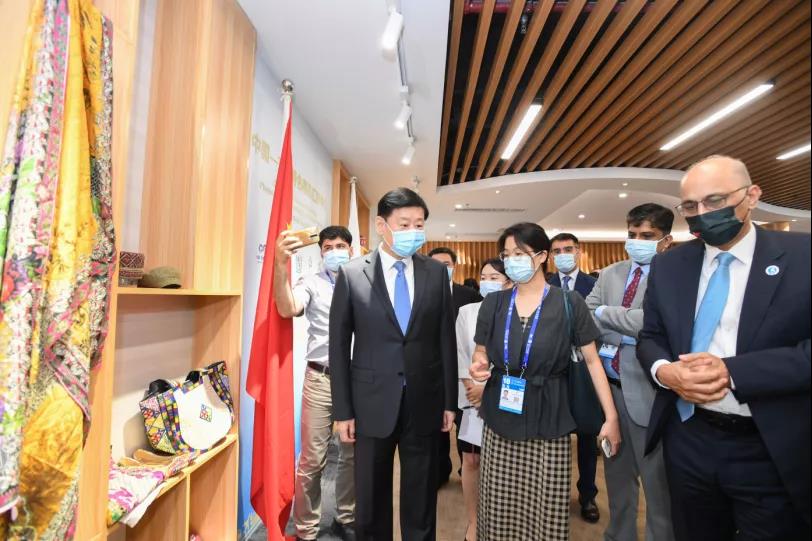 揭牌儀式結(jié)束后,王小東、莫因·哈克等還參觀了巴基斯坦商品展示區(qū)。此次入駐中國(guó)—東盟特色商品匯聚中心,巴基斯坦重點(diǎn)展出紡織品、食品、木制品以及外科手術(shù)產(chǎn)品和運(yùn)動(dòng)產(chǎn)品等主要出口產(chǎn)品。