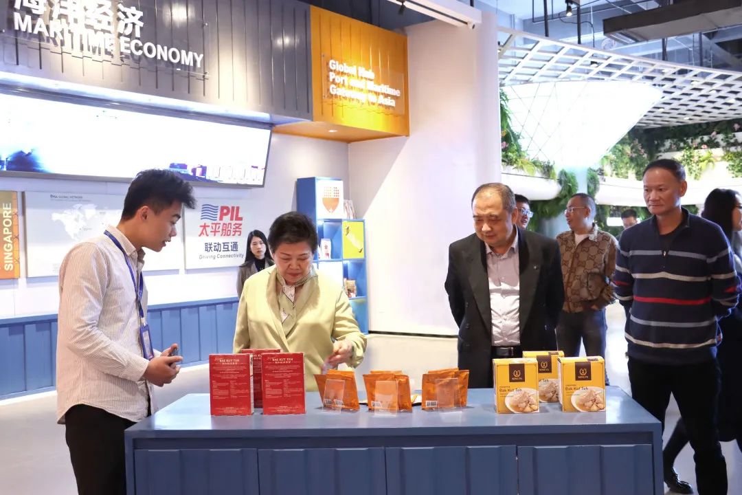 位于園區(qū)內(nèi)的中國(guó)—東盟特色商品匯聚中心,是中新南寧國(guó)際物流園與中國(guó)—東盟博覽會(huì)秘書(shū)處聯(lián)合重點(diǎn)打造的項(xiàng)目,致力于搭建中國(guó)與東盟、RCEP其他區(qū)域國(guó)家乃至“一帶一路”沿線重要國(guó)家經(jīng)貿(mào)往來(lái)線上線下一站式首選平臺(tái)。在參觀匯聚中心的過(guò)程中,考察團(tuán)聽(tīng)取了展館的設(shè)計(jì)理念,對(duì)館內(nèi)琳瑯滿目的特色商品表現(xiàn)出濃厚的興趣。認(rèn)為匯聚中心線下展館不僅設(shè)計(jì)別出心裁,而且能夠通過(guò)線上平臺(tái)一站式購(gòu)買(mǎi)各式東盟乃至RCEP其他區(qū)域國(guó)家的特色商品,比如新加坡的肉骨茶、泰國(guó)的醬料、澳大利亞的紅酒等,對(duì)商家及消費(fèi)者來(lái)說(shuō)將是一種全新的沉浸式商貿(mào)體驗(yàn),同時(shí)匯聚中心提供的商品免費(fèi)展示空間,能夠降低入駐商家的運(yùn)營(yíng)成本,為企業(yè)提供了良好的服務(wù)平臺(tái)。